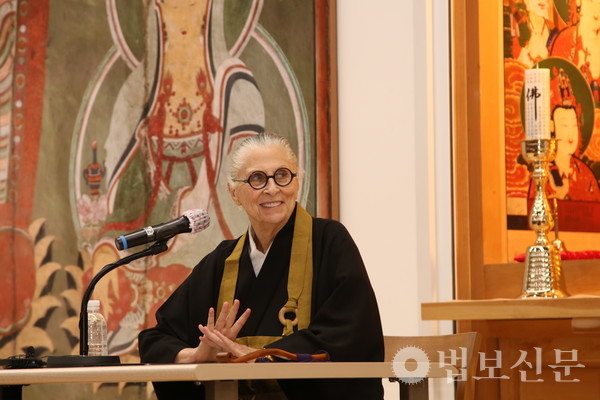 금정총림 범어사에서 ‘2024국제선명상대회’ 참석차 방한한 미국 뉴멕시코주 ‘산타페 우파샤 선센터’ 설립자인 로시 조안 할리팩스 선사를 초청해 ‘선명상 특강’을 마련했다.