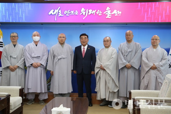 영축총림 통도사가 울산 울주군 대운산 산불 피해의 복구를 위한 지원금을 울산시청에 전달하며 화재 진압에 힘쓴 관계자들을 위로했다.