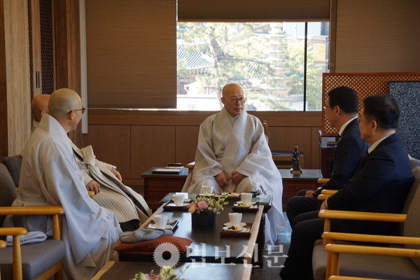 한편 이날 예방에는 원로의원 성오, 총무원 기획국장 철인 스님과 노욱선 종책특보가 배석했다.