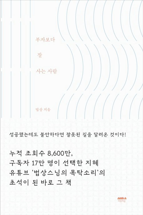물질적 성공을 향한 경쟁이 치열해진 시대, 법상 스님은 새롭게 선보인 ‘부자보다 잘 사는 사람’에서 근본적인 질문을 던진다. “지금 우리는 정말 잘 살고 있는가.” 더 벌기 위해 달려온 끝에 남는 것이 허무와 불안이라면, 우리는 이미 삶의 본질을 놓친 것인지 모른다. 스님은 이 책을 통해 소유의 삶이 아닌 존재의 삶으로 돌아가는 길을 다정하면서도 분명히 제시한다.