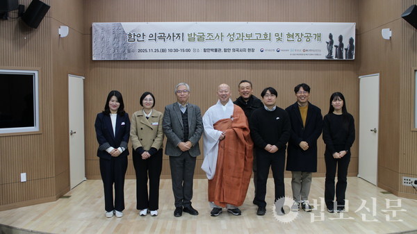 함안군(군수 조근제)과 불교문화유산연구소(소장 혜공 스님)는 11월 25일 함안박물관과 의곡사지 발굴조사 현장에서 ‘함안 의곡사지 발굴조사 성과보고회 및 현장공개’를 개최했다. 이날 보고회는 2021~2025년까지 진행된 발굴조사의 첫 공식 종합 발표로, 사역 구조와 출토유물이 한번에 공개되면서 함안 지여 거점사찰이었을 것으로 추청되는 의곡사지의 실체가 더욱 뚜렷해진 자리가 됐다.