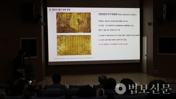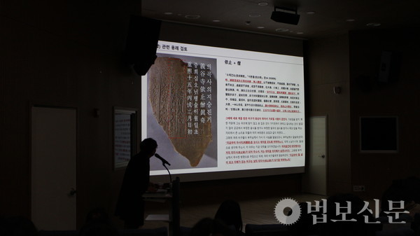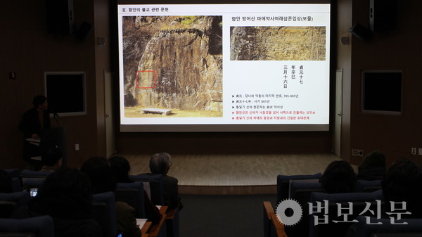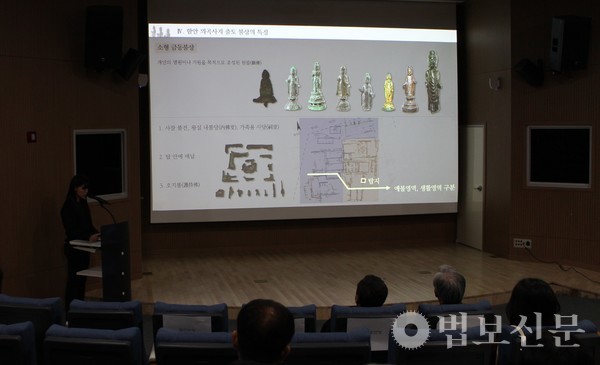 본격적인 성과보고회는 ▲함안 의곡사지 조사성과와 가람(이영환 불교문화유산연구소 발굴2팀장) ▲함안 의곡사지 관련 문헌과 ‘의지승(依止僧)’ 용례 검토(김정원 연구사) ▲함안 의곡사지 출토 불상 고찰(박수진 연구원) 순으로 발표가 이어졌다.