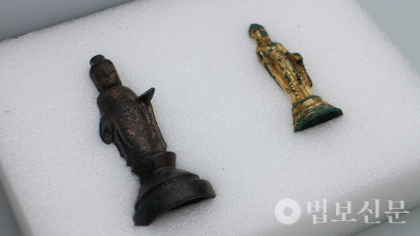 박수진 연구원은 금동불입상과 청동불두 등 높이 11cm 이하의 초소형 출토 불상들의 양식 분석을 통해 통일신라~고려 시대에 걸친 의곡사지 불교 조형의 흐름을 소개했다. 특히 고려시대 양식의 1구의 불상과 통일신라 초기 불상 양식을 보여주는 7구의 불상군을 국립중앙박물관, 경주 황룡사지, 밀양 표충사 등 유물과 유사점을 분석하며 “의곡사 창건 시기 및 조형예술의 수준을 가늠하게 하는 중요한 자료로 평가된다”고 설명했다.