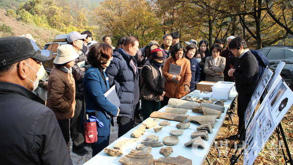 보고회 후 참석자들은 함안박물관 제2전시관 내 의곡사지 발굴 유물을 소개하는 ‘함안의 불교’ 전시를 관람한 데 이어 의곡사지 현장을 방문해 조사 성과의 실제 모습을 확인했다. 조근제 함안군수가 참석한 가운데 이영환 팀장의 안내에 따라 진행된 현장공개는 발굴 유물 소개에 이어 발굴조사가 진행된 사역 내부 전체를 돌아보는 일정으로 진행됐다.