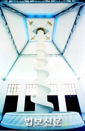 “당신은 익숙하지 않는 곳에서 길을 잃었을 때 지도나 가이드북을 보고 도움을 청할 수 있을 것이다. 하지만 인생에서 자신의 길을 잃어버렸을 때 우리는 어디에서 돌아설 수 있을 것인가?”<사진설명>갤러리 중심에 설치된 8미터 높이의 지혜의 분수.