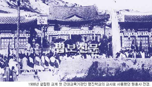 상황이 이렇게 되자 한국불교계 내에서는 자성의 목소리와 흘러나왔고 원흥사 불교연구회를 이끌던 홍월초, 나청호 등 일부 선각자를 중심으로 신불교 운동이 전개됐다. 이들이 제일먼저 시작한 것은 근대적 교육기관을 설립하는 것. 기존의 전통강원 교육 방법으로는 급변하는 시대에 대처하지 못할 뿐 아니라 불교의 진흥을 꾀할 수 없다고 판단했기 때문이다. 이 같은 뜻이 모여 마침내 1906년 5월 8일 교계 첫 근대식 교육기관인 명진학교를 열 수 있었다.