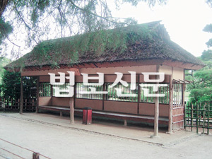 <사진설명>고주산쓰기 불당 다실(五十三次腰掛茶室). 리큐의 와비차 정신이 그대로 드러나 있는 초막형 다실이다.차가 귀족 문화의 일부로 자리 잡으면서 다도라는 예법 또한 형성됐다. 여기에는 다구 감별법, 점다법(點茶法), 서원 장식법, 다실에 맞는 꽃꽂이 등 차와 관련된 수많은 격식들이 포함돼 있었다. 또한 다회가 귀족들의 사교 모임으로 정착되면서 선종의 본래 정신과는 달리 화려한 다실과 복잡한 의례가 강조된다.