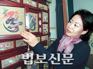 <사진설명>인로왕번(引路王幡)을 자수로 새긴 작품. 그는 자수를 놓으며 ‘부처님 감사합니다’를 가슴에 새긴다.유난히도 눈이 많이 오던 2001년 겨울 어느 날. 시계 침이 새벽 3시를 가리키는 시간까지 잠을 이루지 못한 최 씨는 마음을 다잡고 집을 나섰다. 전라도 순창에서 어린 시절을 보내고 서울로 시집와 가장 힘들었던 그 해 겨울. 더 이상 갈 곳 없는 막막함에 그저 하염없이 눈물만 흐를 뿐이었다. 여리고 여린 여인네의 가냘픈 마음은 갑자기 들이닥친 현실이라는 무게에 짓눌려 이리저리 굴리고 찢기고 파헤쳐진 볼품없는 사과 같았다.
