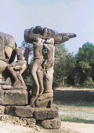 우린 아무래도 거대하고 웅장한 것에는 덜 익숙하다. 좁은 한반도 태생이란 유전인자가 몸의 곳곳에 자리잡고 있는 모양이다. 작고 아담한 것은 솔깃이 정겹다. 여자 또한 그럴 것인데 요즘은 크고 늘씬한 팔등신이 미인의 척도가 되어버렸다. 서구적 물상이 모든 가치를 지배하는 세상이어서 그런가. 앙코르의 곳곳에 새겨진 천상의 댄서 압살라는 그렇지 않다. 가늘게 내리깐 눈으로 바라보는 도발적이지 않은 표정, 가는 허리, 도톰한 유방을 가진 아담한 처녀의 모습이다.