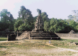 주달관은 니악 뽀안을 가리켜 ' 북해의 황금탑 '이라고 했다. 탑 전체에 황금으로 도금을 해 놓았던가. 지금은 풍상이 빚은 이끼가 창연함을 더해준다. 작은 우주 속에 앉아 사색에 잠긴다. 회색 제복의 관리인들도 그늘에서 사색 중이다. 앙코르의 영광과 조국의 미래를 사색하고 있을까. 앙코르 유적 관리인들은 대부분 젊은 처녀 총각들이다. 전체 인구 중 65세 이상 노인 인구가 2.7%이고 15∼64세 56.6%, 0∼14세 40.7%, 여자 100명당 남자가 93.1명이다. 폴포트 시대 직후에는 86.1명이었다. 14세 미만인 인구가 40%를 넘으니 캄보디아는 엄청 젊은 나라이다.