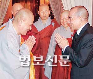 조계종 총무원장 지관 스님은 2월 17일 캄보디아 수도 프놈펜에 위치한 로얄팰리스를 방문해 시하모니 국왕을 면담했다. 시하모니 국왕은 지관 스님 일행을 접견건물 입구서부터 직접 영접하는 등 시종일관 예의를 갖추며 미소를 잃지 않았다.