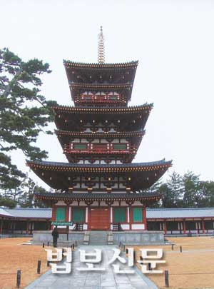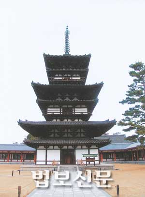<사진설명>야쿠시지 동탑은 780년에 세워진 것으로 다른 건물과 탑이 화재로 소실되는 중에도 창건 당시의 모습을 그대로 이어온 야쿠시지의 유일한 생존물이다. 언뜻 보기에는 6층탑이지만 세 층은 각 본층 사이에 달린 간층 지붕이라 실제로는 3층이다. 하늘에 걸린 ‘건축의 시(詩)’라고 불릴 만큼 아름답기로 유명하다.전후 일본의 문화재를 다룬 다큐멘터리에는 패전 직후 야쿠시지를 지킨 주지 스님의 감동 스토리가 전해지고 있다. 그 다큐멘터리에 등장하는 약사사의 주지는 패전 후 다 쓰러져가는 절간 돌담 옆에서 관광객들에게 차와 과자를 팔고 있다. 주지승에게 촬영 스텝 중 한 명이 “왜 이처럼 훌륭한 문화재 옆에서 관광객들에게 녹차나 팔고 있느냐?”고 물으니 그는 “이렇게라도 해서 건지는 몇 푼으로 후세에 길이 보전해야 하는 문화유산의 주변 청소라도 할 수 있기 때문”이라고 대답했다.