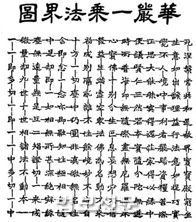 | <사진설명>의상 스님이 집대성한 『화엄일승법계도』. 안광석선생 화엄연기 참조. |