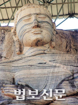 폴론나루와 유적군의 북쪽에 위치하고 있는 갈 비하라(Gal Vihara)는 폴론나루와에서 펼쳐진 싱할라 왕조 제2의 황금시대가 낳은 최고의 걸작으로 손꼽힌다. 폴론나루와 유적군 입구에서 잘 정비된 가로수 길을 따라 걸음을 옮기다 모퉁이를 돌아서면 병풍처럼 펼쳐진 바위에 조각된 거대한 붓다의 좌상이 먼저 순례객을 맞는다. 결가부좌를 하고 왼쪽 손바닥 위에 오른쪽 손바닥을 위로하여 포개 얹은 붓다의 모습은 당당하면서도 편안해 보인다. 마치 황금기를 맞이한 폴론나루와 시대의 자부심을 보여주는 듯 넓고 굳건한 어깨를 곧게 펴고 선정에 든 붓다는 늠름해 보이기까지 한다. 그런데 자세히 들여다보면 이 좌상의 복부에는 사각형의 상처가 남아있다. 누군가가 붓다의 배를 파내려 한 것이 분명하다.