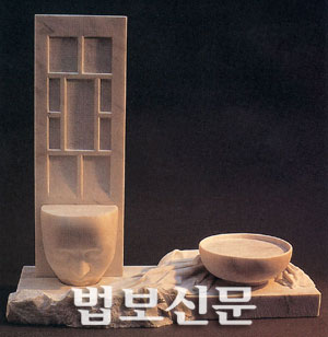 이 작가의 작업은 매번 하나의 화두를 던지고 이를 곰곰이 궁구하는 과정에서 풀려나온 작업들로 보인다. 첫 개인전 주제어는 ‘세간과 출세간’이었다. 윤회세계에서의 깨달음이 출세간적 경지일 텐데 작가는 작업을 통해 그런 꿈을 소망한다. 그 다음에는 여시아문(‘이와 같이 내가 들었다’) 같은 식이다. 이 당시 작업은 불교적 색채가 강렬하고 직접적인 편이다. 특히 법문의 조형화는 문자를 직접적으로 끌어들여 이미지와 문자를 조각 세계로 수렴하고 있다. 이후 근작에 와서는 여전히 종교성 짙은 의미가 드리워져 있지만 그 보다는 자신의 담담한 일상에서의 느낌, 자아 반영적이고 투영적인 이야기를 조형화하는 쪽으로 좀 더 기울어있어 보인다. 좌대·박스형의 지지대 위에 가시나무 조각이 놓여있는데 가시나무 본체나 좌대의 상단에는 문자가 새겨져있다.
