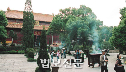 이곳 역시 ‘중국’ 답게 크기 면에서 보는 이를 압도하는 것이 한두가지가 아니다. 대웅보전에는 높이가 24.8미터에 달하는 석가모니 부처님이 봉안돼 있어 고개를 힘껏 젖히지 않고는 상호를 바라보기가 버거울 정도다. 중국에서 제일 큰 나무로 조각한 좌불상이라고 하는데 이 대웅보전을 떠받치고 있는 기둥의 높이만도 세계 최고가 아닐까 싶다.