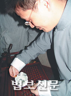 그래서일까. 호포천의 물을 길어다 차를 달인다는 이곳 찻집의 차 맛은 한국에서 익히 맛보았던 용정차와는 사뭇 다르게 느껴진다. 용정이나 호포천의 샘물을 이용해 차를 달여야 용정차의 제 맛을 느낄 수 있다는 설명을 듣다보니 중국에 가서 용정차를 사왔다는 사람은 많이 보았지만 물을 사왔다는 사람은 아직 만나보지 못했다는 생각이 들어 피식 웃음이 나왔다.