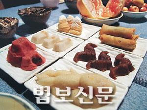 | <사진설명>차와 함께 나오는 각종 떡과 과일 등이 눈을 즐겁게 해 준다. |