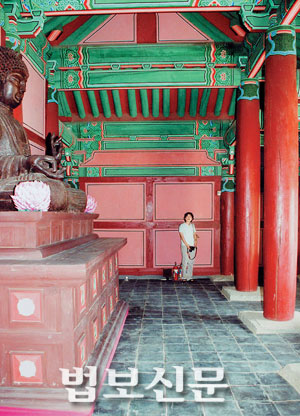 | <사진설명>청주시가 복워한 홍덕사. 법당 내부에는 보도블록에 점안도 안된 불상이 덩그러니 놓여있다. |