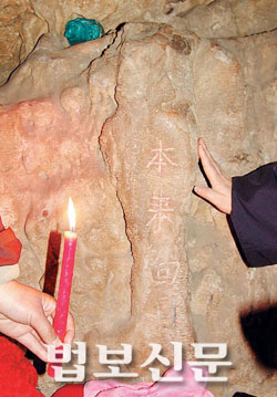 | <사진설명>혜가 스님이 구법의지를 보이며 잘라낸 팔이 동굴벽에 붙어있다. |