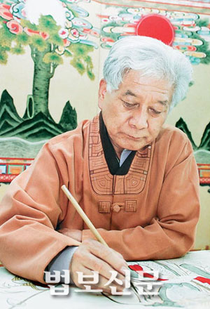 | <사진설명>백발의 송규태 민화장. 겸손과 당찬 기운이 배어있는 장인이다. |