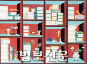 | <사진설명>정리정돈이 예사롭지 않은 ‘책거리 병풍’. |