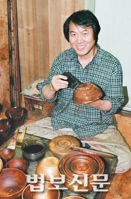 | <사진설명>손대현 나전칠기장이 발우에 옻칠을 하고 있다. 수행정진 할 스님이 사용할 발우이기에 더욱 정성을 쏟는다. |