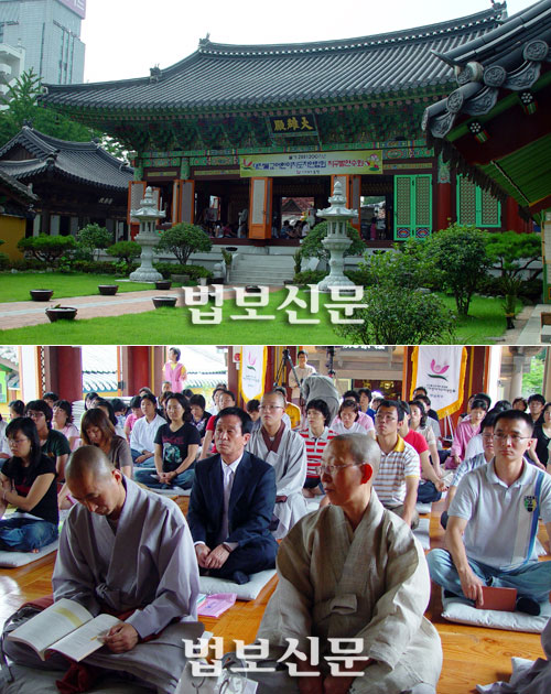 | <사진설명>중창 불사 5년만에 정갈하게 정돈 된 광주 원각사 경내<사진 위>, 7월 8일 원각사 대웅전에서 열린 제1회 전라도 권역 어린이 법회 지도자 연수<사진 아래>. |