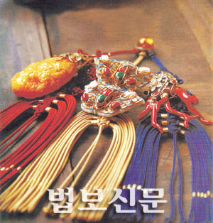 | <사진설명>낙지발 대삼작. 낙지발 술이 기품있게 뻗은 대삼작 노리개는 크기 뿐 아니라 색감도 화려하다. |