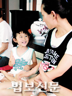 앉아있기도 불편할 만큼 관절염으로 고생하던 박재영 거사는 이곳 한꽃빌리지로 이사 온 후 매주 월요일 오후가 되면 빠짐없이 수행에 참석한다. 불교에 대해 별달리 아는 것은 없었지만 하나 둘씩 배워가는 과정도 재미있고 바른 자세로 결가부좌를 하고 앉으면서 관절염도 조금씩 좋아지는 것 같아서다. 요즘엔 시간이 날 때마다 아들도 함께 데리고 나올 정도로 재미를 들렸다.