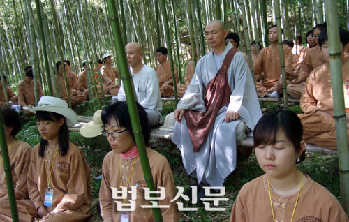 | <사진설명>표충사 템플스테이의 특성화 프로그램인 대나무 숲 참선. |