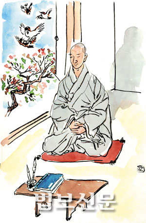 환희심에 저절로 읊조려진 깨달음의 노래였다. 일타는 모란꽃을 무심히 보다가 단샘으로 가 표주박에 찬물을 한 가득 담아 마셨다. 감로수로 흥분을 가라앉혔다. 단샘 물의 찬 기운이 온몸을 휘돌자 주변의 산 것들이 선명하게 눈에 잡혔다. 단샘 위로 쳐진 물푸레나무 가지에서는 박새들이 날아와 짹짹짹 소리쳤고, 돌담 위로는 다람쥐가 나타나 달렸다.