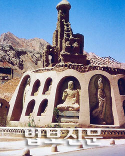 | <사진설명> 화염산 기슭에 만들어진 불상과 조형물 |