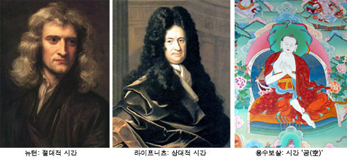 라이프니츠는 철학적 관점에서, 용수보살은 부처님의 가르침에 바탕하여 시간의 절대성을 부정하였다. 그러나 우리의 경험은 시간이 혼자서 흘러감을 확실히 보여준다. 더욱이 뉴턴의 이론은 천체현상과 지상의 모든 현상에서 너무나 정밀하게 시간의 절대성을 증명해 주는 것 같았다. 단 한 건도 어긋남이 없었고 추호도 의심할 여지가 없이 이른바 과학적으로 증명이 끝난 일이었다. 때문에 라이프니츠의 상대성 철학은 오랫동안 받아들여지지 않았으며, 용수보살의 공사상은 한갓 관념적 유희에 불과한 듯하였다. 용수보살님은 석가모니 이후 가장 크게 깨친 분이라는데 “결국 깨달았다는 것도 혼자 허깨비 보는 것 아닌가?” 하고 은근히 속으로 의혹을 해볼 수도 있었겠다.