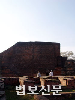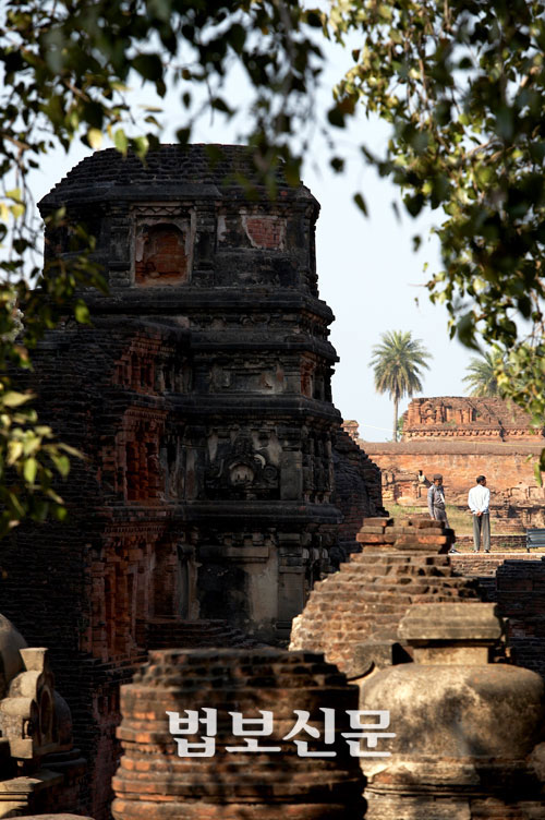 지금은 보이지 않는 5세기부터 12세기까지 전성기의 나란다를 허공에 그려본다. 손끝의 저 자리에는 동서남북과 중앙에 세워진 탑 위에 붉은 깃발이 펄럭이고 있었으리라. 그 깃발 다섯 성루에는 사방에서 도전해 오는 이단(異端)과 논쟁하기 위해 나란다에서 가장 명석한 다섯 학자가 그곳을 지키고 있었을 것이다. 일만여 명의 스님들과 학자들은 촌음을 아껴 대승과 소승십팔부(小乘十八部)를 배웠고 도서관에는 수트라(經)와 사스트라(論)와 탄트라(tantra)를 연구하는 이들로 북적였다. 스님들의 얼굴에서는 늘 진지함이 묻어났고, 나이의 많고 적음을 떠나 불법을 수호하고 탐구하는 도반이기에 모두가 한 가족이었으리라.