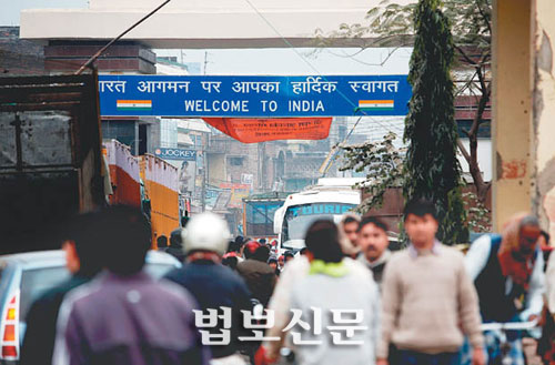얼마나 지났을까. 인도와 네팔의 국경이 만나는 곳에 다다랐다. 그런데 웬걸. 나라와 나라 사이의 국경 지대에 달랑 대학교 교문만한 대문이 전부다. 우리에게 익숙한 휴전선 때문이었을까. 뭔가 엄청난 걸 기대했던 국경은 이렇게 허무하게 자리 잡고 있다. 그 교문 사이로 버스와 트럭은 사람들을 실어 나르고 상인들은 물건을 팔고, 바구니를 머리에 이고 사람들이 유유히 오고 간다. 인도인과 네팔인은 다른 나라 사람이라고 보기 어려울 정도로 닮아있다. 그렇지만 그들 사이에서도 서열은 존재한다. 카스트 제도는 폐지됐지만 인도인들 사이에서는 아직도 서로 의식하듯 인도인은 네팔인을 자신들의 하인쯤으로 취급한다.