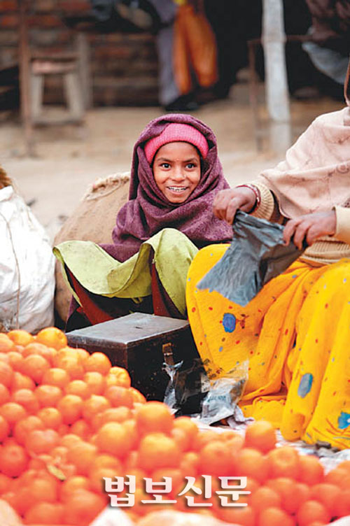 | 국경지대에서 오렌지를 파는 아이. 외국인을 보고 환히 웃는다. |