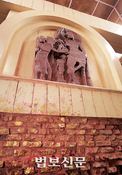 드디어 고대하던, 무려 6시간 동안 달려 도착한 룸비니. 그런데 사실 조금 실망스럽다. 말 그대로 횅하다. 마야 부인이 싯다르타를 출산하고 나서 목욕을 했다고 전해지는 넓은 연못이 보인다. 5세기경만 해도 이곳을 지났던 법현 스님은 ‘지금도 사람들이 이 물을 항상 퍼마신다’고 했지만 이 물 역시 색은 검기만 하다. 바로 앞 마야 사원에 들어서니 싯다르타의 탄생을 형상화한 4세기 조각과 붓다의 발 모양이 찍혀있는 돌이 보이지만 형체를 알아보기란 보통의 시력으로는 불가능해 보인다.