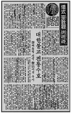 | 1954년 11월 4일 서울신문에 실린 ‘왜색종교관을 버리라’는 이승만의 제2차 담화문. |