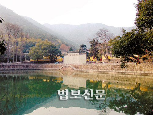들어올 때의 길로 발길을 돌렸을 때, 들어올 때 무심코 지나쳤던 일주문 앞 거대한 벽돌 벽이 길을 막아섰다. 한 걸음 옆으로 비켜서니 천동사의 아름다운 모습이 호수 위에 그림처럼 펼쳐져 있다. 화두를 타파해야 하는 간화와 마음을 반조하는 묵조를 상징하듯, 벽과 호수는 그렇게 한자리에 위치해 있었다. 방법은 달랐어도 마음 속 깊이 서로를 품어 안았던 대혜와 굉지처럼 결국은 모두가 하나의 목표로 가기 위한 길임을 보여주는 듯하다.