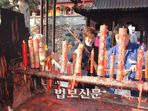 | 중국인 불자들이 자신의 소원을 담아 헌향하고 있다. |