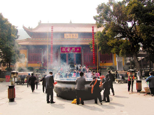 일주문에 들어서자 도량 안을 가득 메운 희뿌연 연기가 코를 찌른다. 평일임에도 제법 많은 향객들이 대웅보전 앞에 놓인 대형 향로에 기다란 향을 한 묶음씩 사루고 있다. 부처님을 향해 합장한 채 정성스레 예를 표하는 중국 불자들의 모습이 자못 진지하다.