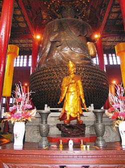 순례단이 겨우겨우 안개를 헤치며 항저우 시내에 위치한 정자사(淨慈寺)에 도착했다. 정자사는 소동파(蘇東坡)가 지상의 천국이라 노래했던 항저우의 명물 서호(西湖) 남쪽에 위치해 있다. 송대 5산 10찰의 하나인 정자사는 염불선(念佛禪)의 발상지로 오월국 왕 전흥숙이 954년 염불정토(念佛淨土)사상과 선의 일치를 주창한 법안종 제3조 영명 연수(永明延壽ㆍ904~975) 선사를 위해 건립한 도량이다. 정자사는 한국 불교와도 인연이 깊다. 일찍이 고려 광종은 영명 선사의 『종경록』과 『만선동귀집』을 읽고 감동해 당시 중국에서 유학 중인 혜거 스님을 급히 귀국하게 한 뒤 승려 36명을 선발, 영명의 문하에서 법안종풍을 잇게 했다.