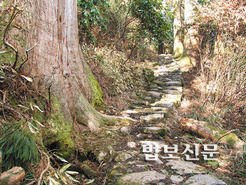 | 아름드리 삼나무 숲으로 이뤄진 천목산. 산 정상에서 초입까지는 1000년 전 만들어졌다는 돌계단 ‘천년고도(千年古道)’가 놓여있다. |