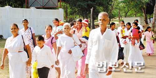 | 아이를 안은 엄마, 할아버지와 할머니, 꽃과 갖가지 과일을 함께 든 청년들 등등. 모두 하얀 사리를 입고 루완웨리세야 대탑으로 향하고 있었다. 아누라다푸라의 6개 마을 사람들이 모여 나라의 발전과 내전이 하루 속히 평화롭게 해결되기를 기도하기 위한 것이었다. |