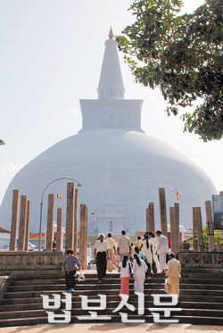 호국불교를 상징한다고 볼 수 있는 순백의 루완웨리세야 대탑. 한편 스리랑카의 호국불교는 자국의 소수민족뿐만 아니라 자국민에게 큰 아픔을 주고 말았다. 그러나 루완웨리세야 대탑을 순례하던 날 탑에 모여든 스리랑카 불자들은 하나 같이 평온해보였다. 이유인 즉 아누라다푸라의 6개 마을 사람들이 모여 나라의 발전과 내전이 하루 속히 평화롭게 해결되기를 기도하기 위한 것이었다. 매월 보름이나 스리랑카에 불교가 전래된 6월 보름 외에도 수시로 이곳을 찾아 기도를 올린다고 한다. 마음에 잔잔한 감동의 물결이 일었다. 호국불교라는 그네들의 모순된 민족주의를 다시 불교의 힘, 신심의 힘, 기도의 힘으로 정화하는 것이리라. 핏빛을 감춘 순백의 탑에서 낯선 희망을 발견한 순간이었다.