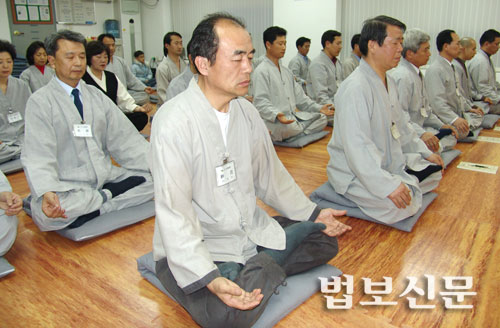 | 참선은 더이상 출가자만의 수행법이 아니다. 참선수행을 하고 있는 재가불자들. 법보신문 자료사진 |