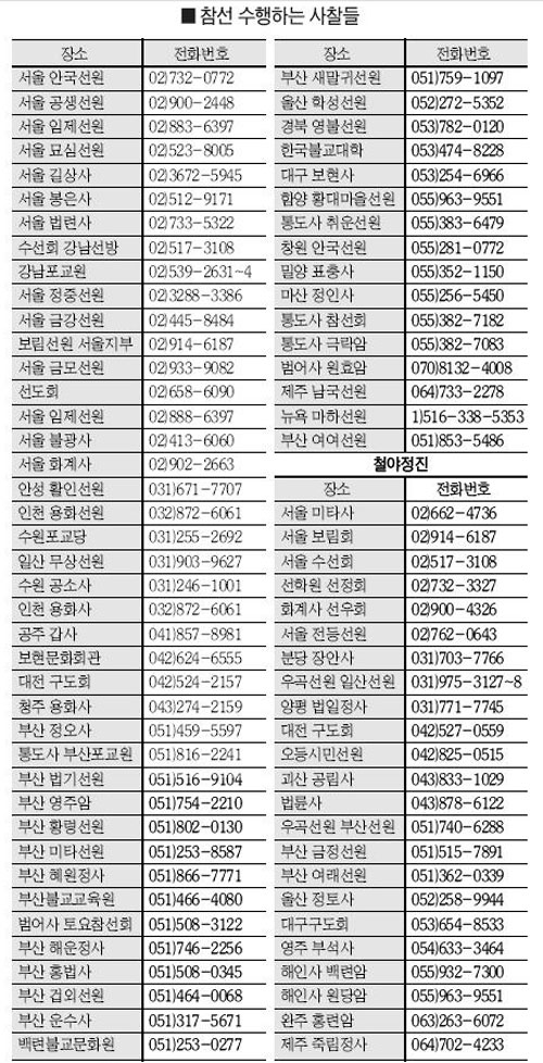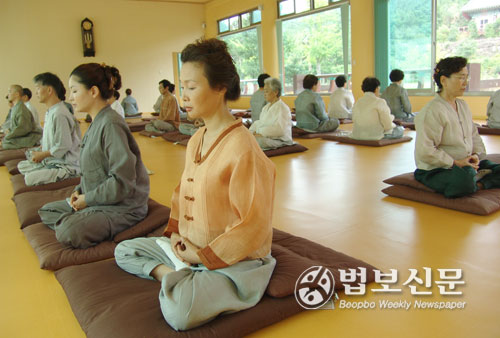 | 제주도 남국선원에서 참선으로 정진의 구도열을 지피고 있는 수행자들. 이처럼 재가 수행자를 위한 선원 및 선방은 전국에 약 84개소가 개설되어 있다. |