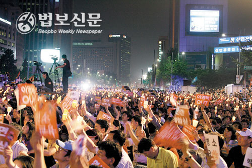 | 김지하 씨는 지난해 서울시청광장에 켜진 촛불을 인류역사에서 처음으로 켜진 ‘화엄개벽’으로 보고 있다. 법보신문 자료사진 |