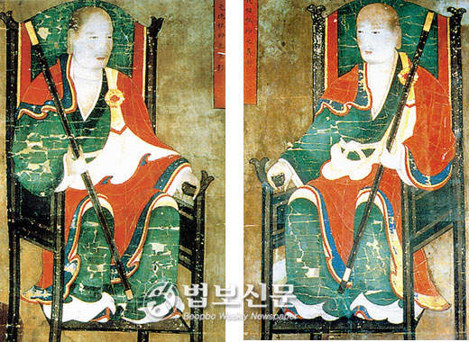 | 김지하 시인은 수운 최제우가 가진 화엄개벽사상의 첫 씨앗이 원효〈사진 왼쪽〉로 부터 시작된다고 강조하고 있다. 또 의상〈사진 오른쪽〉의 ‘몸’ 발언이 『묘법연화경』과 함께 이제 시작되는 현대세계의 비전이 화엄개벽 모심의 핵심이자 기본내용이라고 설명했다. |